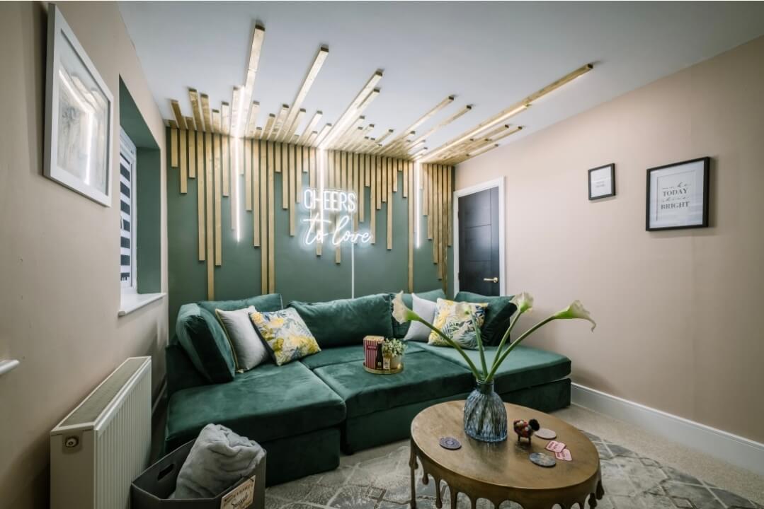 The property has private parking, an indoor 4 seater hot tub and games room as well as an enclosed garden and star gazing pod. We have also recently installed a cozy cinema room with 90" screen, snuggle rug and sofa, as well as a new dining area which can also be used as a pool and table tennis table.